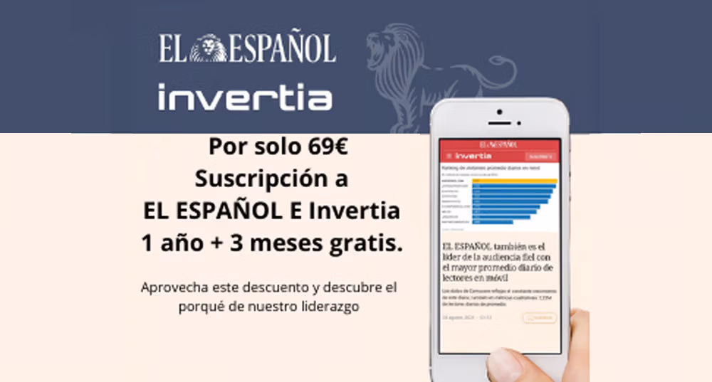 Haz click en el siguiente enlace Suscripción El Español + Invertia podrás suscribirte a El Español e Invertia por tan solo 69€ por 1 año + 3 meses.