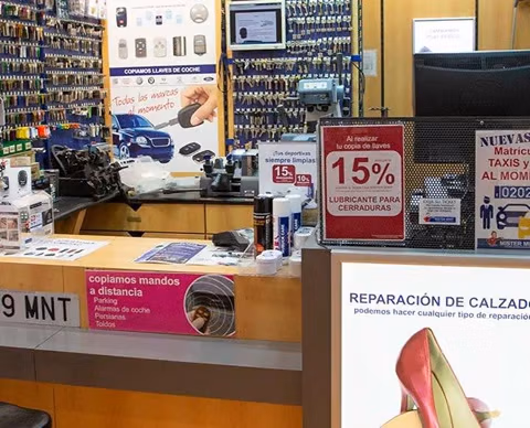 Una de estas tiendas podemos encontrarla en el conocido CC La Gavia y además de poder hacernos un duplicado de llaves también se dedican a reparación rápida de calzado, afilado de cuchillos, impresión de tarjetas o grabados entre muchos otros servicios, lo que nos permitirá emplear muy poco tiempo en que nos hagan alguno de estos servicios para así poder continuar con nuestras compras tan tranquilamente.